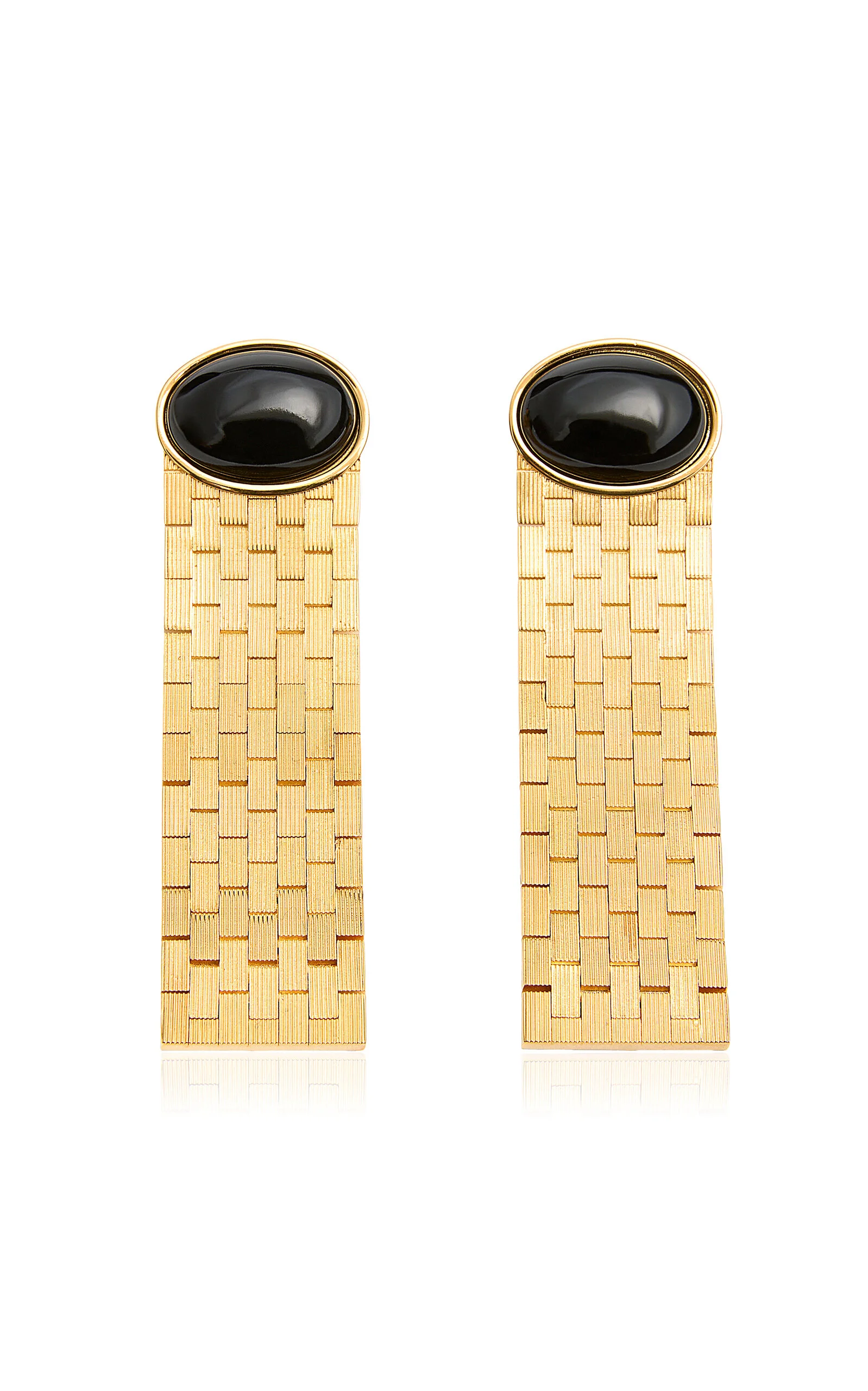 Khaite’s Catherine Holstein defines New York’s cool girl with her ability to perfect covetable accessories that marry grit with glamour and blur the boundaries between day and evening. These integrated earrings are made from 18k gold-plated brass links entwined underneath large oval stones, creating an effortless way to take your look from day to night in a matter of seconds. PRODUCT DETAILS - Post fastening - Composition: 100% 18k gold plated brass - Made in Italy