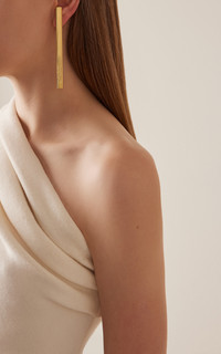 PRODUCT DETAILS - Drop earrings silhouette, 18k gold-plated brass, ridged texture - Composition: 100% 18k gold plated brass - Made in Italy SIZE & FIT - This item measures 3.9 x 0.5 x 0.25"