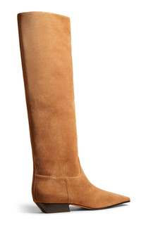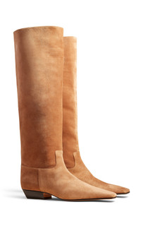 Khaite's shoes are designed to be walkable, not ornamental — you'll never find a pair that's higher than a midi heel. The 'Marfa' boots have a knee-high silhouette with elongated square toes and a low Cuban heel. Wear it with a flowing maxi dress. PRODUCT DETAILS - Slip on - Composition: suede - Designer color: Camel - Imported