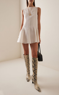 If it wasn’t official before, it is now: Khaite’s Catherine Holstein defines New York’s cool girl with her ability to perfect covetable accessories that marry grit with glamour and blur the boundaries between day and evening. Crafted meticulously in Italy, 'Ona' is a sleek, calfskin leather knee boot shaped with a sharp toe and set atop a slender stiletto heel. PRODUCT DETAILS - Heel height measures approximately 55mm/ 2" - Zip fastening - Composition: calfskin leather - Made in Italy