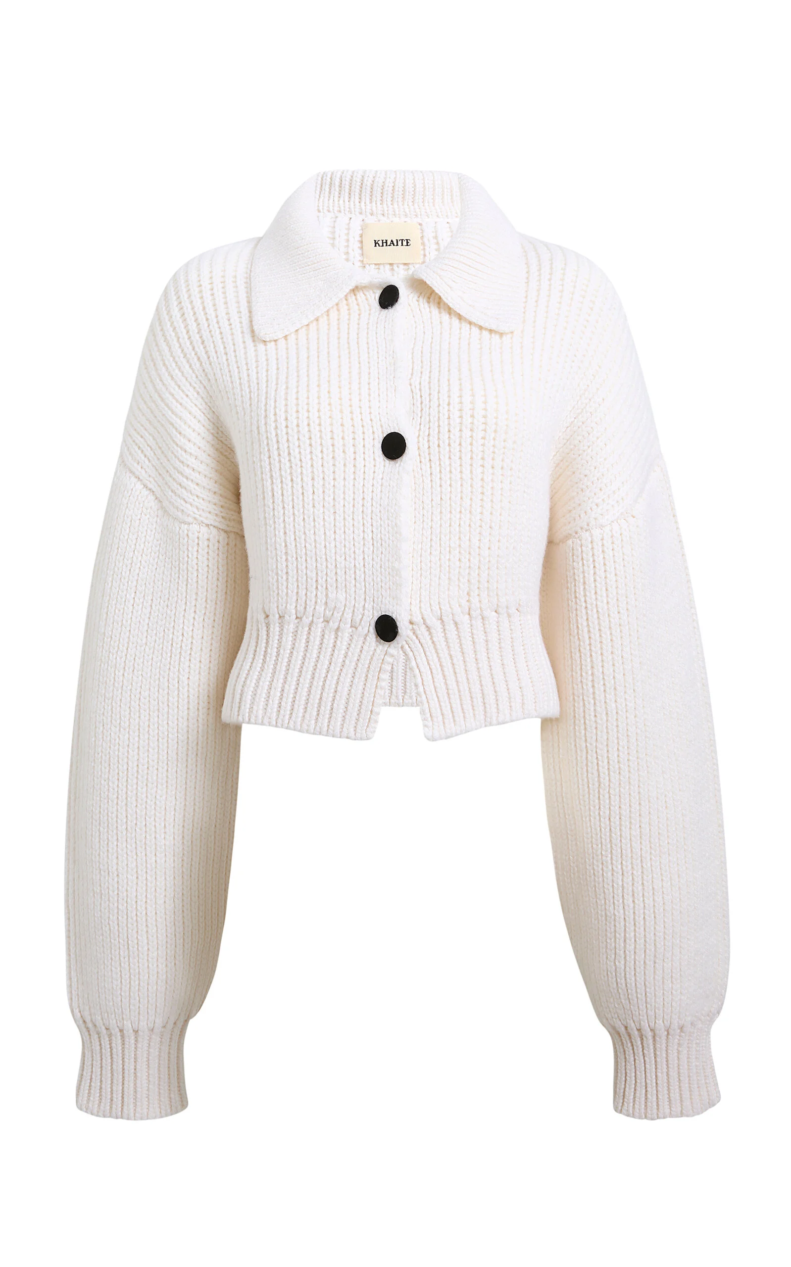 PRODUCT DETAILS - Regular fit, long sleeves, pointed collar, cropped length - Button fastening - Composition: 100% Cashmere - Color: Glaze - Dry clean - Made In: Mongolia - Resort '26