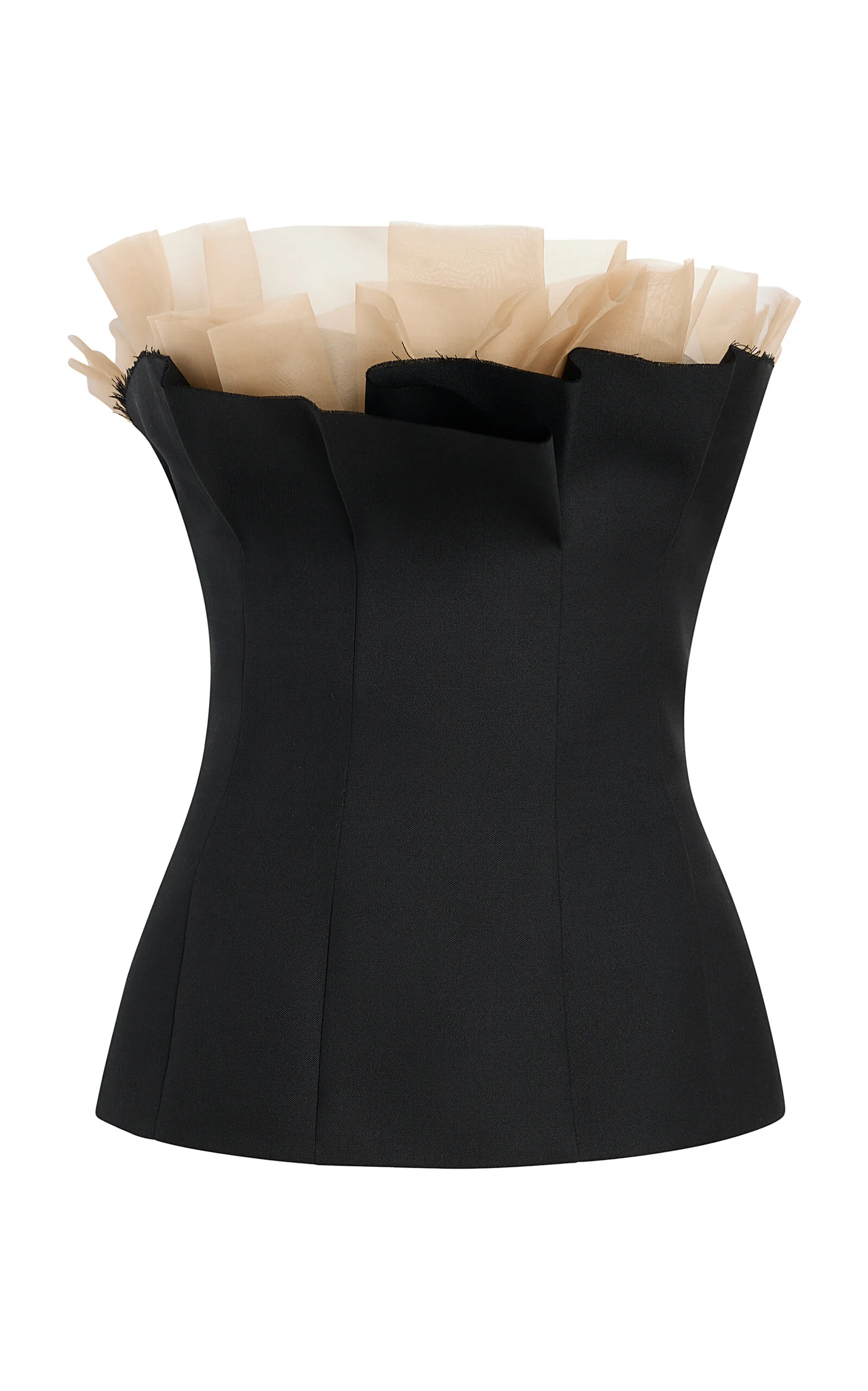 Sal Frayed Organza-trimmed Wool And Silk-blend Cady Bustier Top