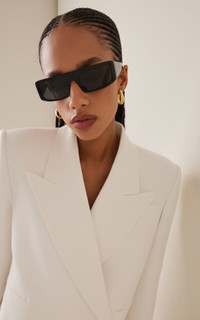 Made in collaboration with legendary eyewear brand Oliver Peoples, this collection reimagines vintage forms through a shared dedication to distinctive yet enduring style, exquisite materials, and unparalleled craftsmanship. Handcrafted in Italy, the '1979C' sunglasses are made from hard-wearing acetate with an angular silhouette traced by corewire inspired by the hardware of KHAITE handbags and tipped with alternating, hand-inlaid logo plaques. Each pair includes a signature lipstick red case and a drawstring pouch that doubles as a lens cloth. PRODUCT DETAILS - Composition: acetate - 100% UV protection - Made in Italy
