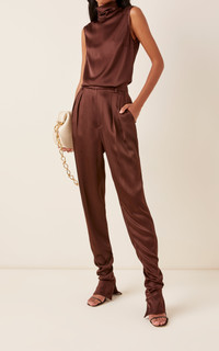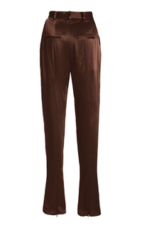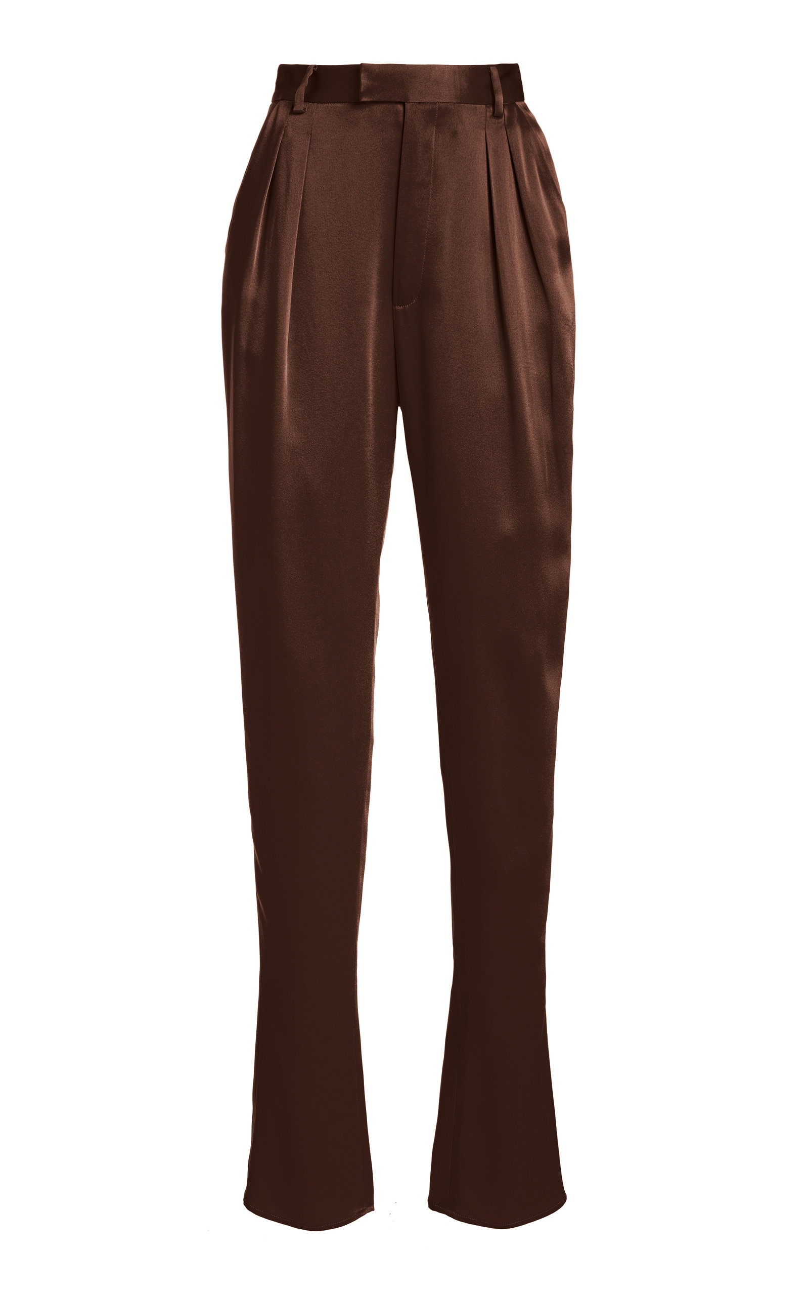 Double-Faced Satin High-Waisted Pleated Trousers brown