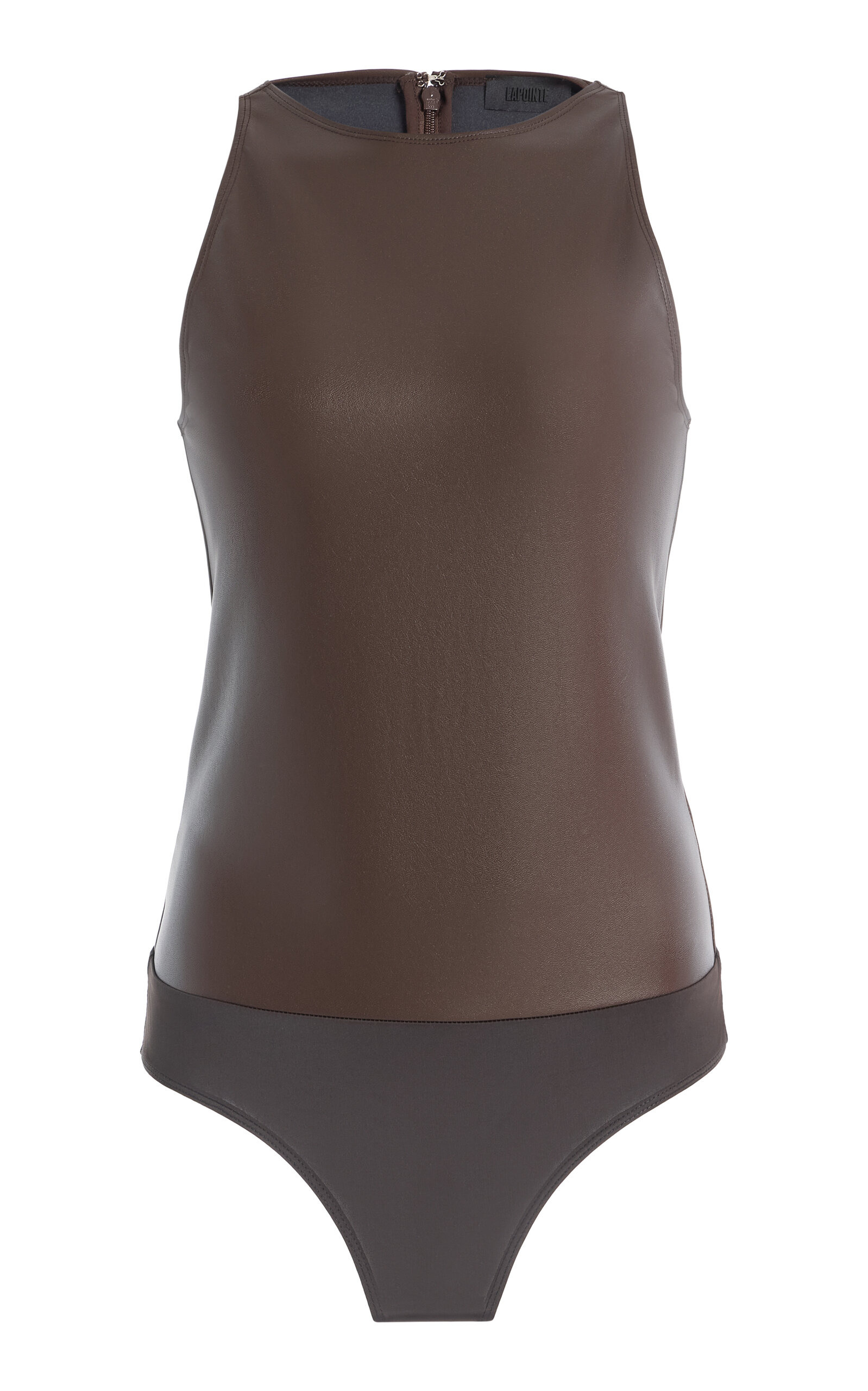 Stretch Faux Leather Bodysuit brown