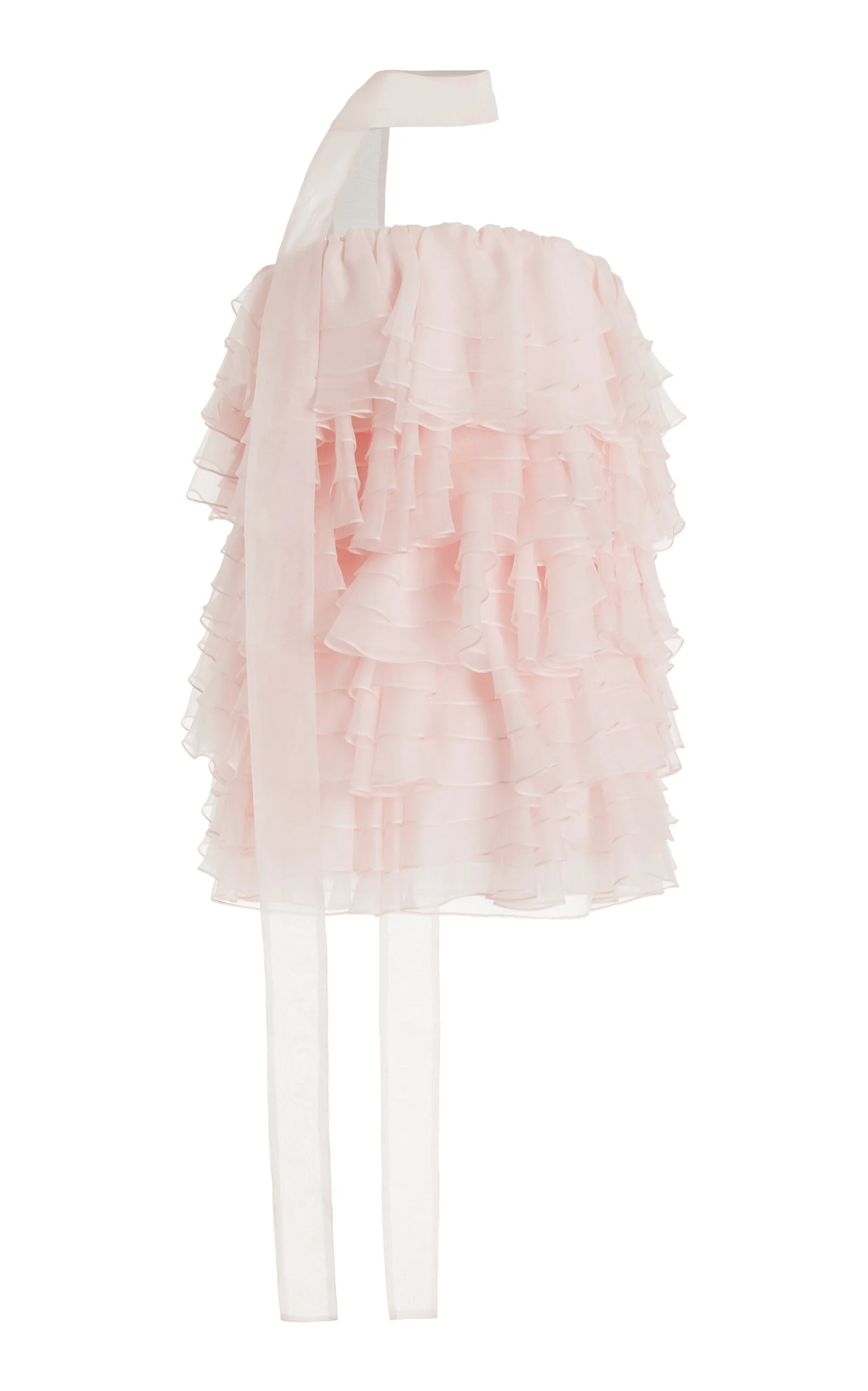 PRODUCT DETAILS - Loose fit, layerd ruffles, sheer, mini dress - Zip fastening - Unlined - Composition: 100% Silk - Color: light pink - Dry clean - Spring '25 - Ships with scarf