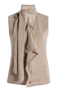 Ruffled Wool-Blend Sleeveless Cardigan taupe