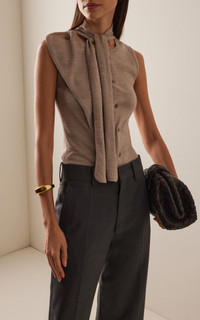 Helmed by Christophe Lemaire and Sarah-Linh Tran, the Lemaire brand creates a modular wardrobe through timeless Parisian design — pieces are meant to be paired effortlessly across seasons and collections. Leather goods and accessories are made by local artisans with novel approaches to age-old techniques. Reflecting the label’s love of movement, this sleeveless cardigan is made from a dry, soft merino wool with panels to tie or button. PRODUCT DETAILS - Fall '25 - Button fastening - Composition: 50% wool, 50% acrylic - Dry clean - Made in Portugal