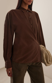 Helmed by Christophe Lemaire and Sarah-Linh Tran, the Lemaire brand creates a modular wardrobe through timeless Parisian design — pieces are meant to be paired effortlessly across seasons and collections. Leather goods and accessories are made by local artisans with novel approaches to age-old techniques. PRODUCT DETAILS - Fall '25 - Slip on - Composition: 76% silk, 24% polyamide - Designer color: Brunette - Dry clean - Imported SIZE & FIT - Our model is wearing a size FR 34 - Model is 5'9.5" with a 32" bust, 24" waist, and 35.5" hip