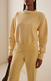 LA-based label Les Tien treats its fabrics in-house to create a vintage look and feel. Designed with a raw-edge crewneck, the 'Britney' sweatshirt is made from garment-dyed weighty cotton fleece that's brushed for softness. PRODUCT DETAILS - Pre-Fall '25 - Slip on - Composition: 100% cotton - Designer color: Washed Butter - Machine wash - Made in the USA SIZE & FIT - Our model is wearing a size Small - Model is 5'10" with a 30" bust, 24" waist, and 34" hip - Designed for a relaxed fit