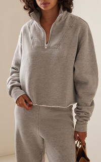 Haley Cropped Half-Zip Cotton Sweatshirt grey