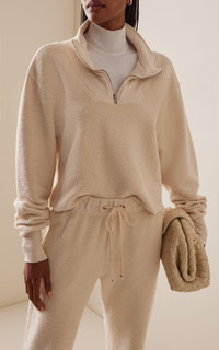 Haley Cropped Half-Zip Cotton Sweatshirt ivory
