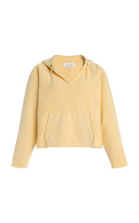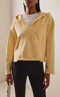 LA-based label Les Tien treats its fabrics in-house to create a vintage look and feel. The 'Rachel' hoodie is made from a washed cotton fleece with raw edges. The cropped fit offers a shorter, modern silhouette that sits at or above the waist. Perfect for pairing with high-rise pants or layering over longer tops. PRODUCT DETAILS - Pre-Fall '25 - Slip on - Composition: 100% cotton - Designer color: Washed Butter - Machine wash - Made in the USA SIZE & FIT - Our model is wearing a size Small - Model is 5'10" with a 30" bust, 24" waist, and 34" hip - Designed for a relaxed fit