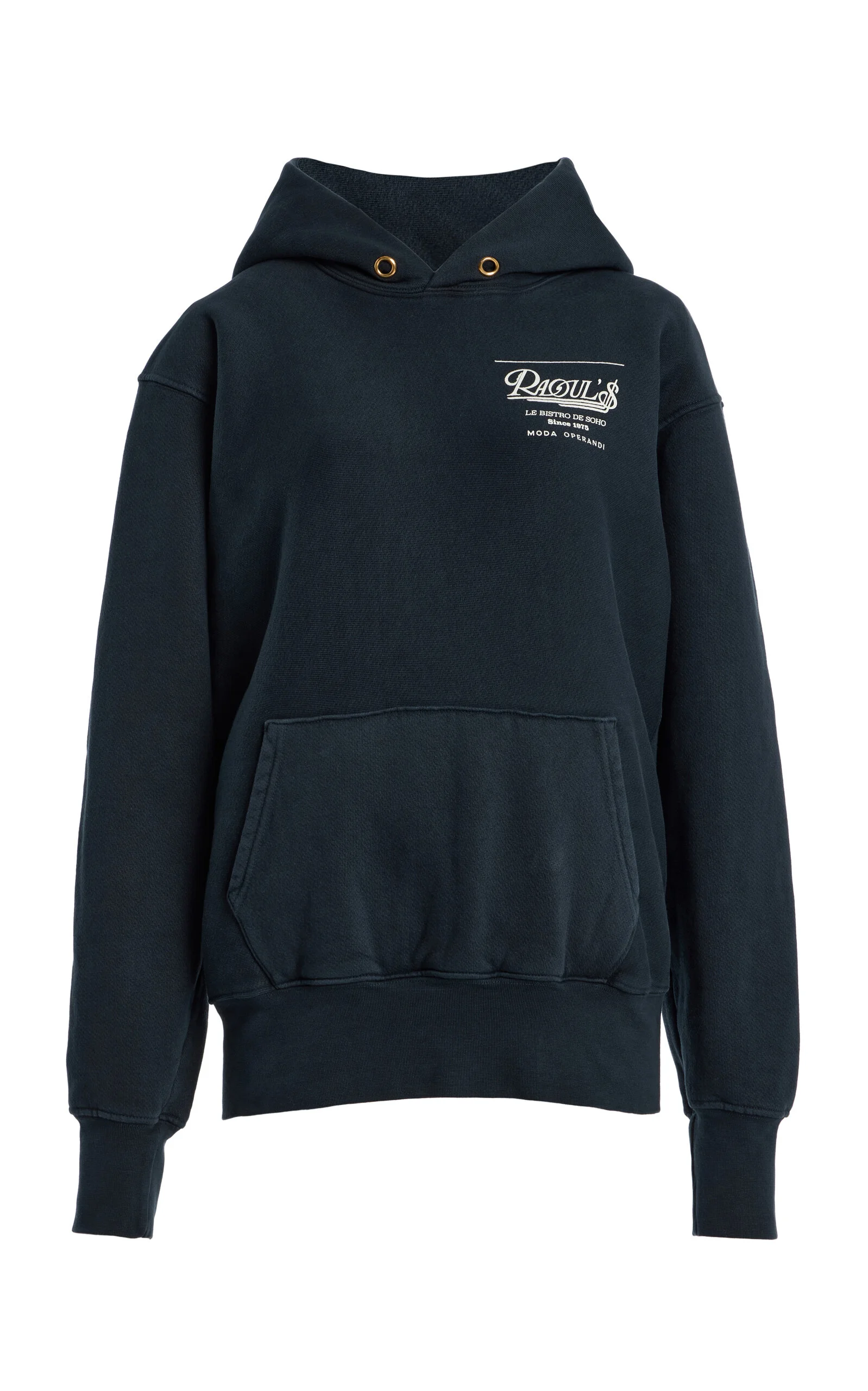 From the Moda-exclusive capsule collection celebrating the 50th anniversary of the iconic NYC downtown Parisian eatery, Raoul's. This hoodie has a unisex fit made from heavyweight cotton fleece that's been pre-shrunk and garment washed for softness. PRODUCT DETAILS - Slip on - Composition: 100% cotton - Designer color: Faded Black - Machine wash - Made in the USA SIZE & FIT - Unisex Fit to Men's Sizing, Women Should Size Down for a Less Oversized Fit