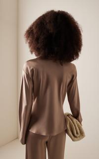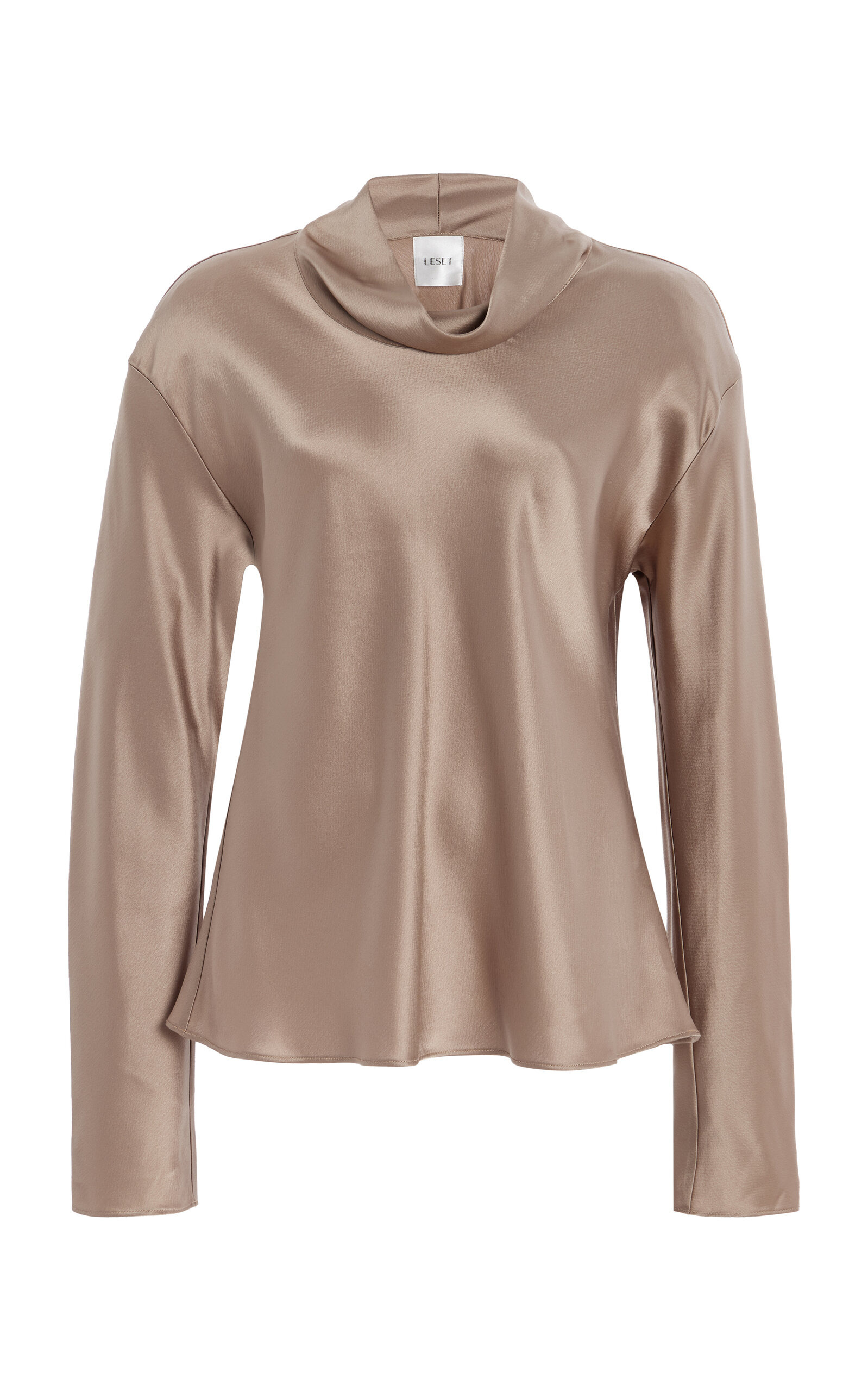 Founded by Lili Chemla, Leset is devoted to making irresistible casual essentials that are clean, modern and always enjoyable to wear. Whether it's day or night or somewhere in between, the LA-based brand's loungewear pairings elevate versatility to new heights. Cut in the best-selling, Japanese-crafted satin, the 'Barb' is a beautifully draped long sleeve top featuring a soft cowl neck. PRODUCT DETAILS - Resort '25 - Slip on - Composition: 64% triacetate, 36% polyester - Dry clean - Imported SIZE & FIT - Our model is wearing a size Small - Model is 5'10" with a 31.5" bust, 23.5" waist, and 35" hip - Designed for a relaxed fit