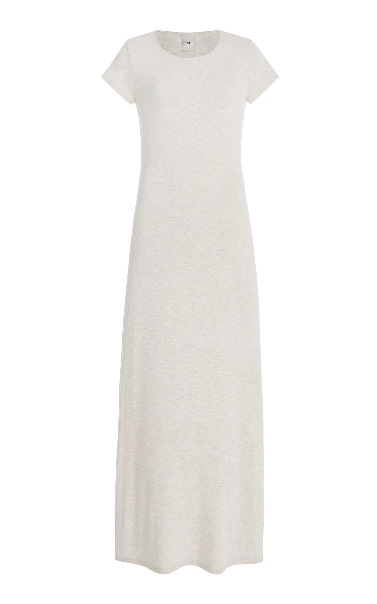Founded by Lili Chemla, Leset is devoted to making irresistible casual essentials that are clean, modern and always enjoyable to wear. Whether it's day or night or somewhere in between, the LA-based brand's loungewear pairings elevate versatility to new heights. Cut from buttery soft brushed "Sweater Jersey," 'The Lauren' short-sleeve maxi dress is a wardrobe staple — feature a clean crew neckline, figure-skimming silhouette, and a full maxi length. Layer it up with a button down, a knit and boots during the day, then with heels and tonal accessories for a night out. PRODUCT DETAILS - Pre-Fall '25 - Slip on - Composition: 47% viscose, 47% polyester, 6% spandex - Designer color: Cloud - Dry clean - Made in the USA