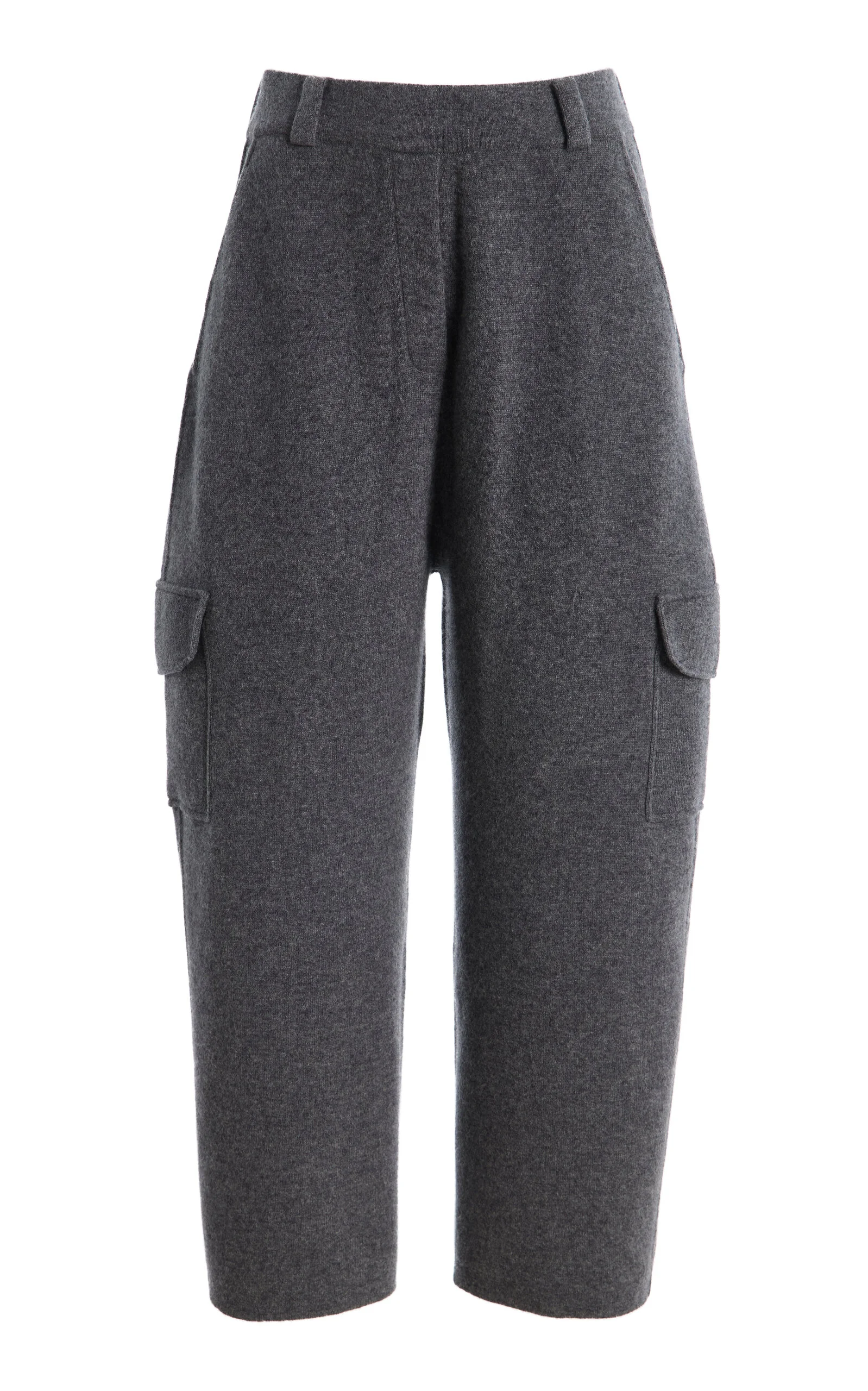 Lisa Yang Collections are focused on creating designs that modernize the way we wear cashmere. A knitted cargo trouser, the Azaria trouser is crafted from signature double face cashmere for directional structure. The relaxed fit, barrel silhouette sits comfortably at the waist with an elasticated waistband and falls to voluminous full-length legs that taper at the ankles. It is detailed with a tailoring-inspired faux fly and belt loops and finished with utility-inspired patch pockets. PRODUCT DETAILS - Resort '26 - Pull on - Composition: 100% cashmere - Designer color: Graphite - Dry clean - Imported