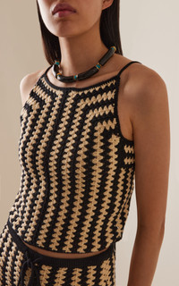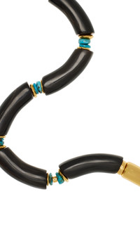 Using an eclectic mix of found materials, Lizzie Fortunato creates statement jewelry imbued with a warm optimism. This season's lineup offers jolts of uplifting color that can easily be dressed up or down. Black tubular horn necklace with dotted turquoise accents and gold-plated brass macaroni closure. PRODUCT DETAILS - Macaroni closure - Composition: black tubular horn, turquoise, gold-plated brass - Made in the USA SIZE & FIT - Length: 17"