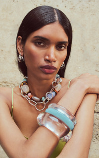 Using an eclectic mix of found materials, Lizzie Fortunato creates statement jewelry imbued with a warm optimism. This season's lineup offers jolts of uplifting color that can easily be dressed up or down. PRODUCT DETAILS - Slip on - Composition: Aquamarine blue acrylic - Made in the China