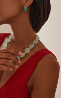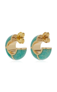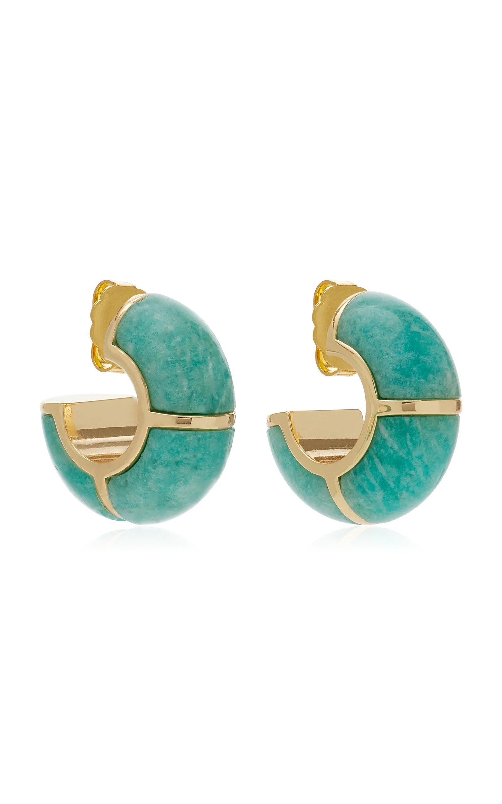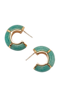 Using an eclectic mix of found materials, Lizzie Fortunato creates statement jewelry imbued with a warm optimism. This season's lineup offers jolts of uplifting color that can easily be dressed up or down. PRODUCT DETAILS - Gold-plated brass hoop earrings with amazonite stone inlay, Gold-plated brass, amazonite - Post - Composition: Gold-plated brass, amazonite - Made in the China