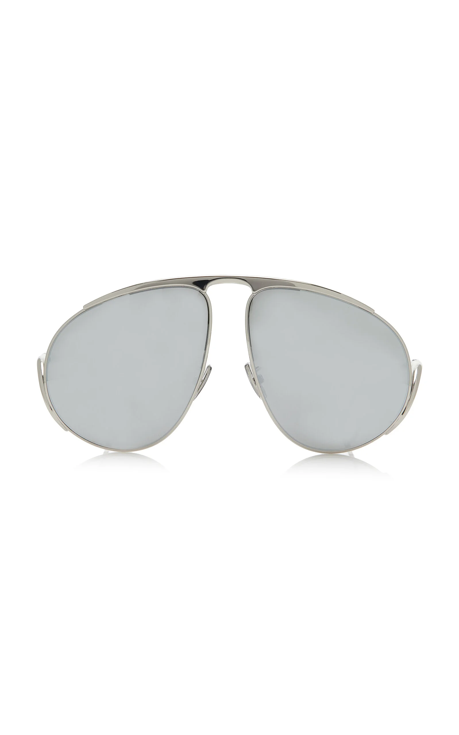 Loewe's sunglasses are defined by their contemporary silhouettes. Made in Italy, the vintage-inspired frames are crafted from the highest quality materials and add effortless glamour to any look. This pair features exaggerated aviator frames made from lightweight palladium metal set with smoke-grey mirrored lenses. PRODUCT DETAILS - Composition: metal - 100% UVA/ UVB protection - Designer color: Shiny Palladium/ Smoke Mirror - Made in Italy