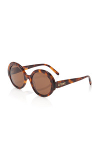 Loewe's sunglasses are defined by their contemporary silhouettes. Made in Italy, the vintage-inspired frames are crafted from the highest quality materials and add effortless glamour to any look. This pair has oversized round frames made from hard-wearing acetate detailed with the house's moniker at the temples. Store them in the accompanying leather case to keep them pristine. PRODUCT DETAILS - Composition: acetate - 100% UVA/UVB protection - Designer color: Havana/ Brown - Made in Italy