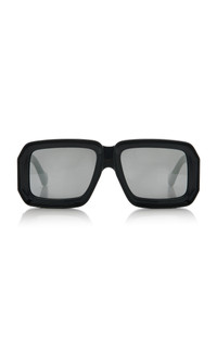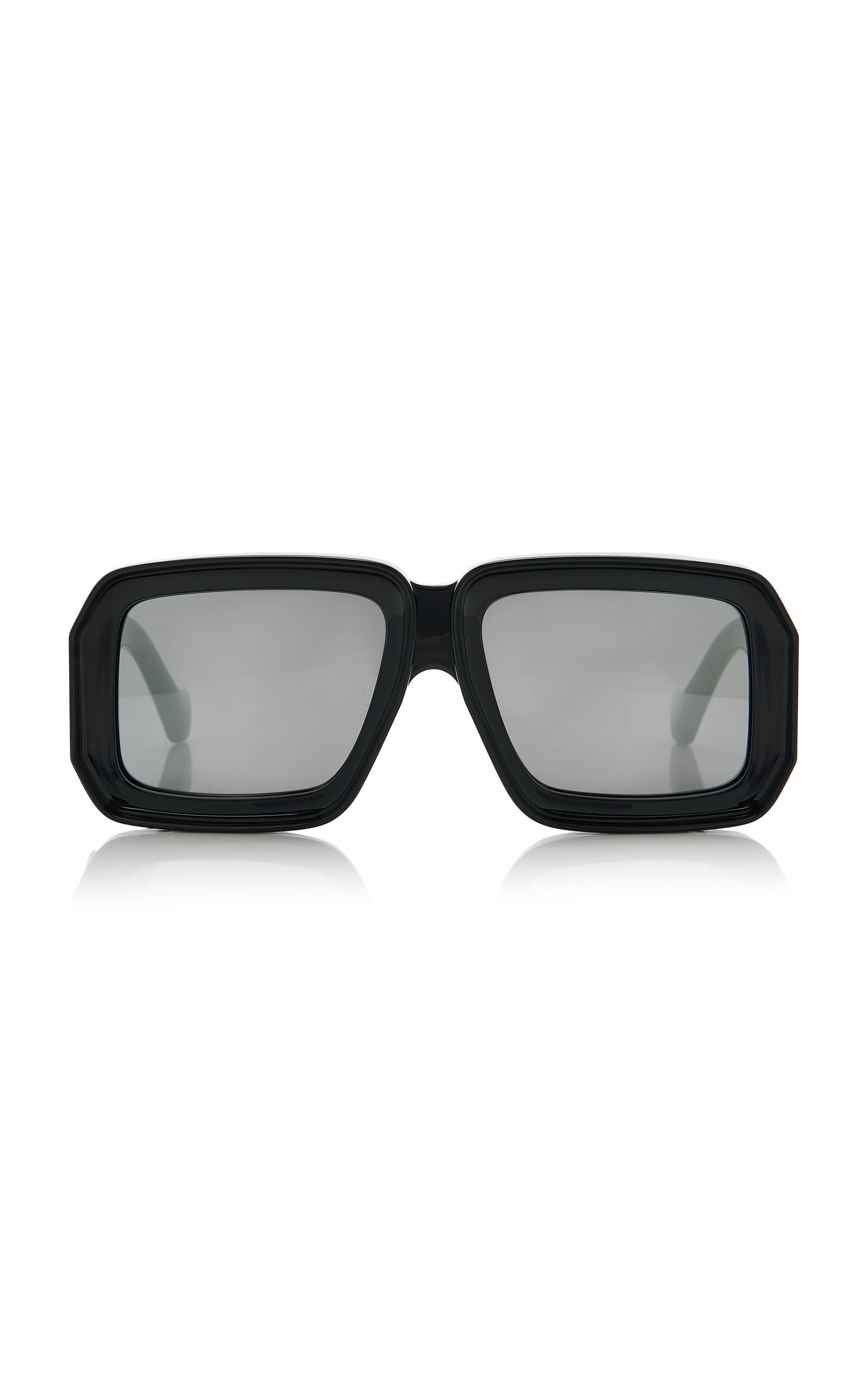 Loewe's sunglasses are defined by their contemporary silhouettes. Made in Italy, the vintage-inspired frames are crafted from the highest quality materials and add effortless glamour to any look. This season's 'Paula's Ibiza' pair features oversized mask frames made from chunky acetate set with smoke-grey mirrored lenses. PRODUCT DETAILS - Composition: acetate - 100% UVA/ UVB protection - Designer color: Shiny Black/ Smoke Mirror - Made in Italy