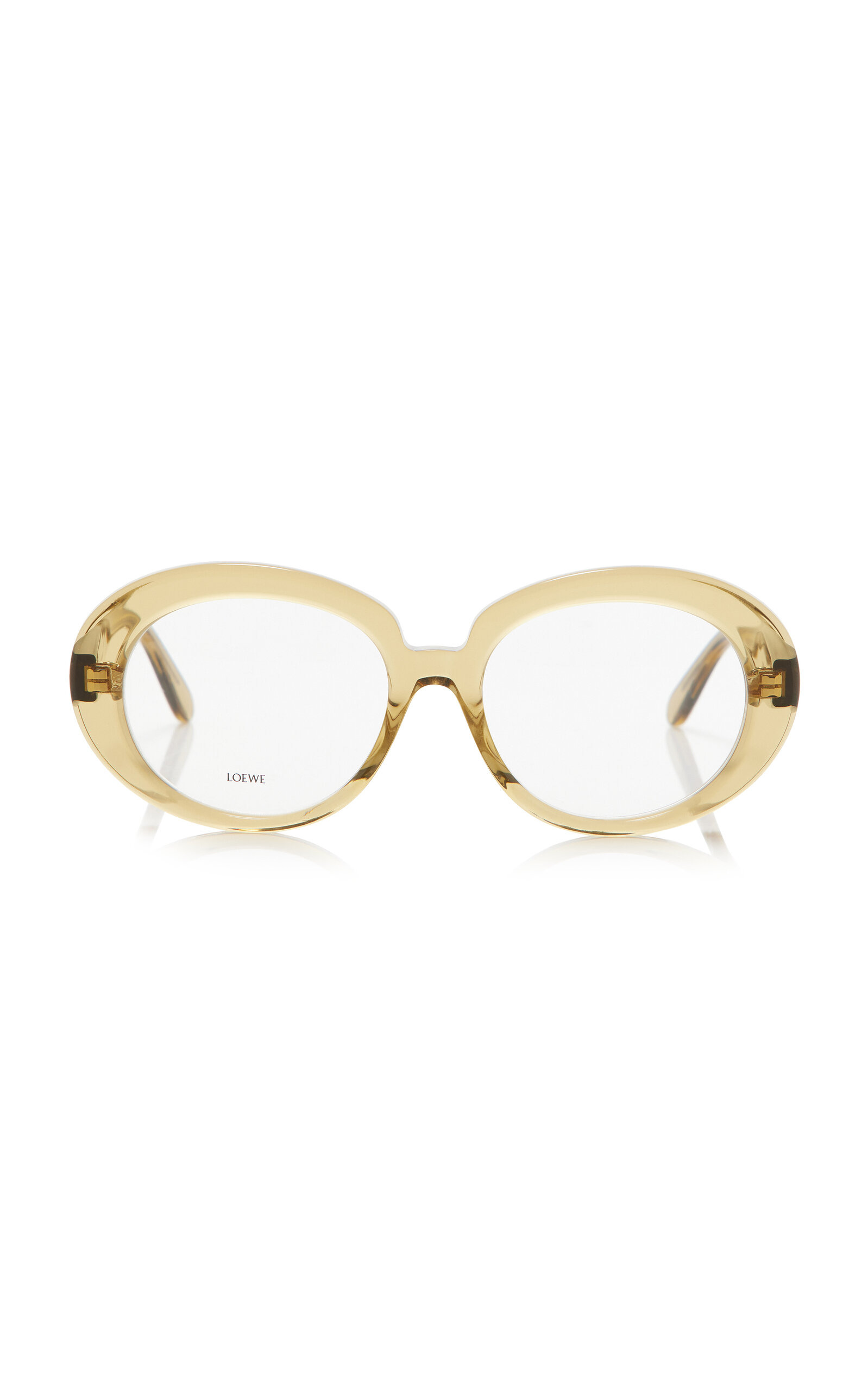 Loewe's eyewear is defined by its contemporary silhouettes. Made in Italy, the vintage-inspired frames are crafted from the highest quality materials and add effortless glamour to any look. Crafted in Italy from translucent acetate, these glasses have chunky round frames decorated with the house's moniker at the temples. Store them in the accompanying leather case to keep them pristine. PRODUCT DETAILS - Composition: acetate - Made in Italy