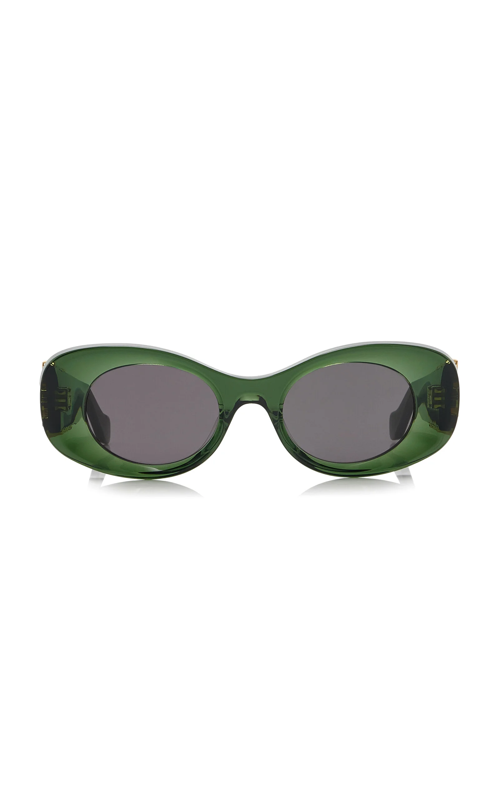 Handcrafted from the highest quality materials, Loewe's eyewear blends vintage inspiration with modern sensibilities. These glasses feature beveled round frames made from transparent acetate with smoke-grey lenses and the label's signature anagram logo stamped at the temples. PRODUCT DETAILS - Composition: acetate - 100% UVA/UVB protection - Designer color: Dark Green/ Smoke - Made in Italy