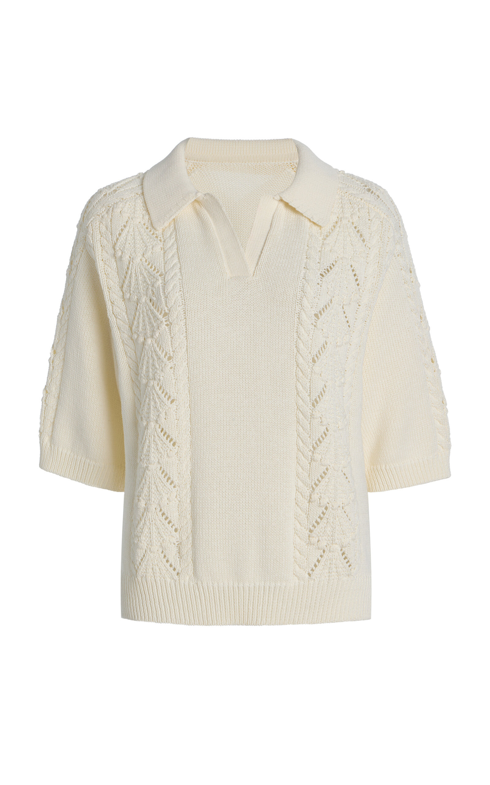 Kina cable and pointelle-knit cotton polo shirt Ivory