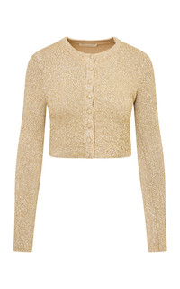SEQUIN STRETCH CARDIGAN PRODUCT DETAILS - Resort '26 - Slim fit, rounded neckline and long sleeves, crystal embellished throughout - Unlined - Composition: 82% VISCOSE, 18% POLYESTER - Front Button Closure - *Dry clean only - Made in China