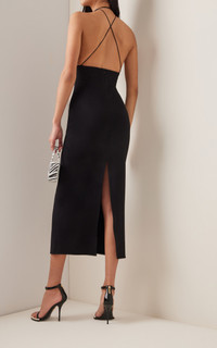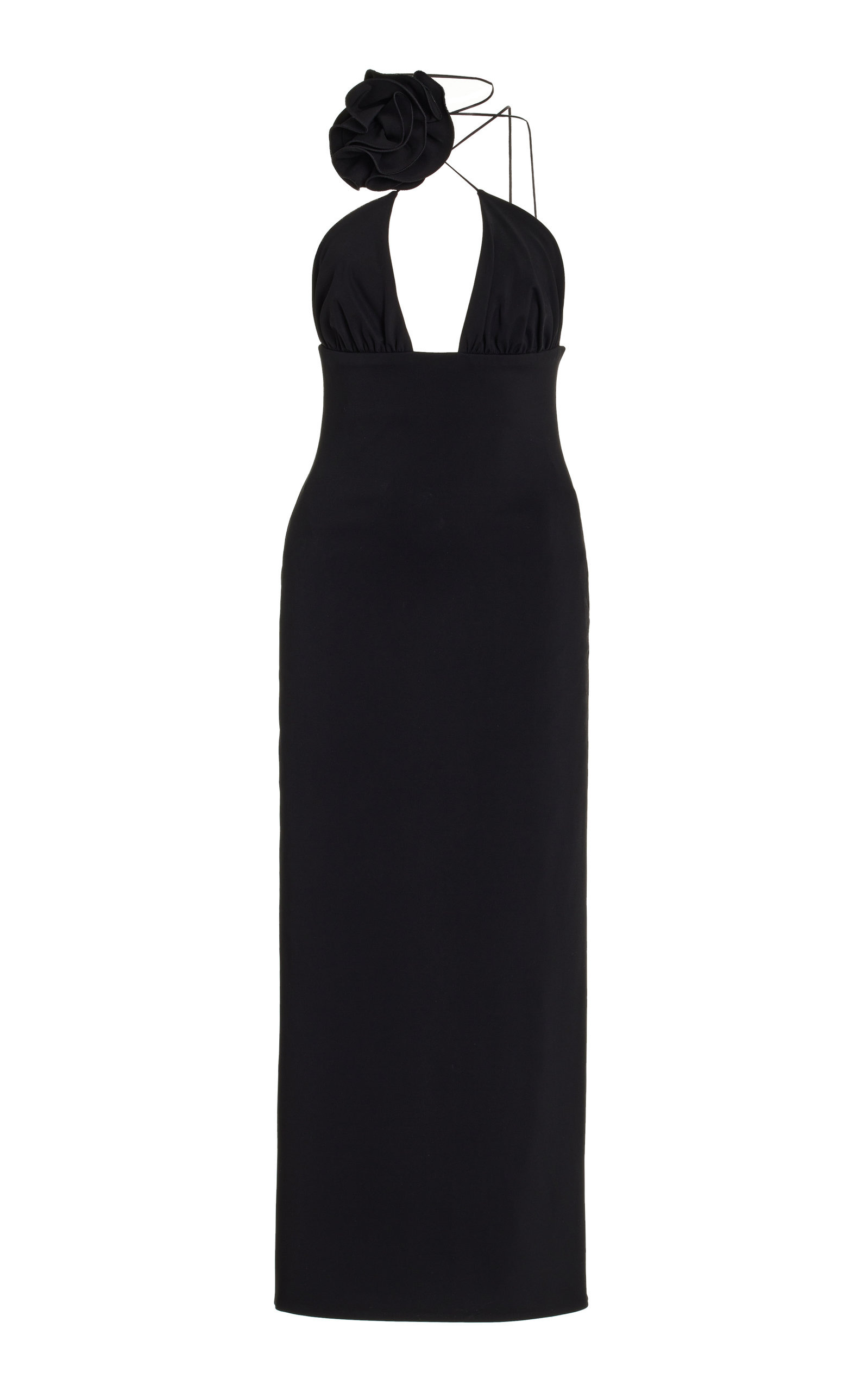 The Polish talent returns with her hotly-coveted (and locally-made) collections, complete with avant-garde proportions and her signature cool seduction. The result is Butrym’s inimitable edge—for all hours of the day. Cut for a figure-framing fit, Magda Butrym's midi dress is detailed with delicate ties that wrap around your decolletage and a floral applique. Keep accessories simple, all you need to complete this style are party-ready heels and a clutch. PRODUCT DETAILS - Slips on - Composition: 97% viscose, 3% elastane - Dry clean only - Imported SIZE & FIT - This style fits true to size - We suggest taking your usual size