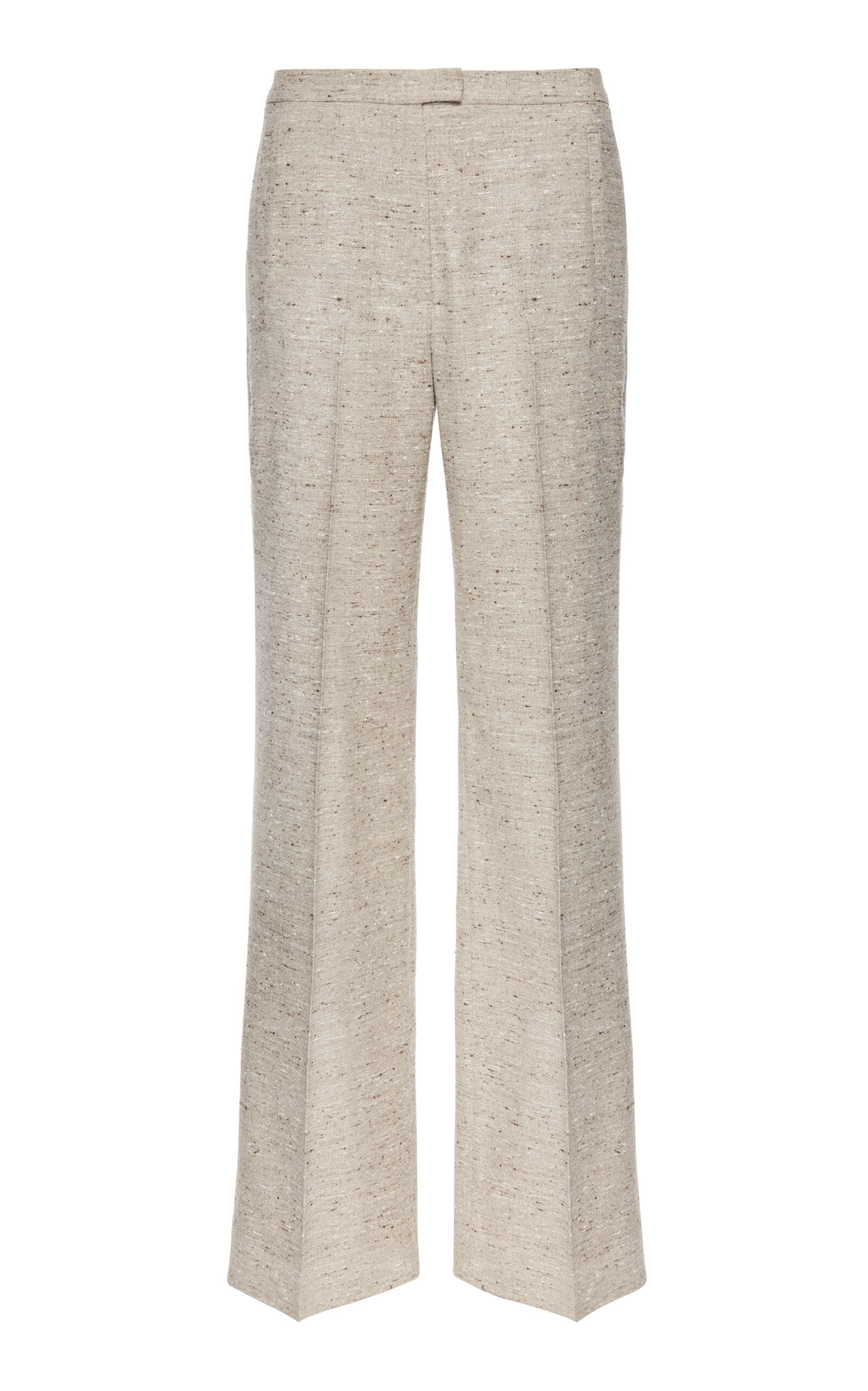 Straight-leg silk blend trousers in beige melange