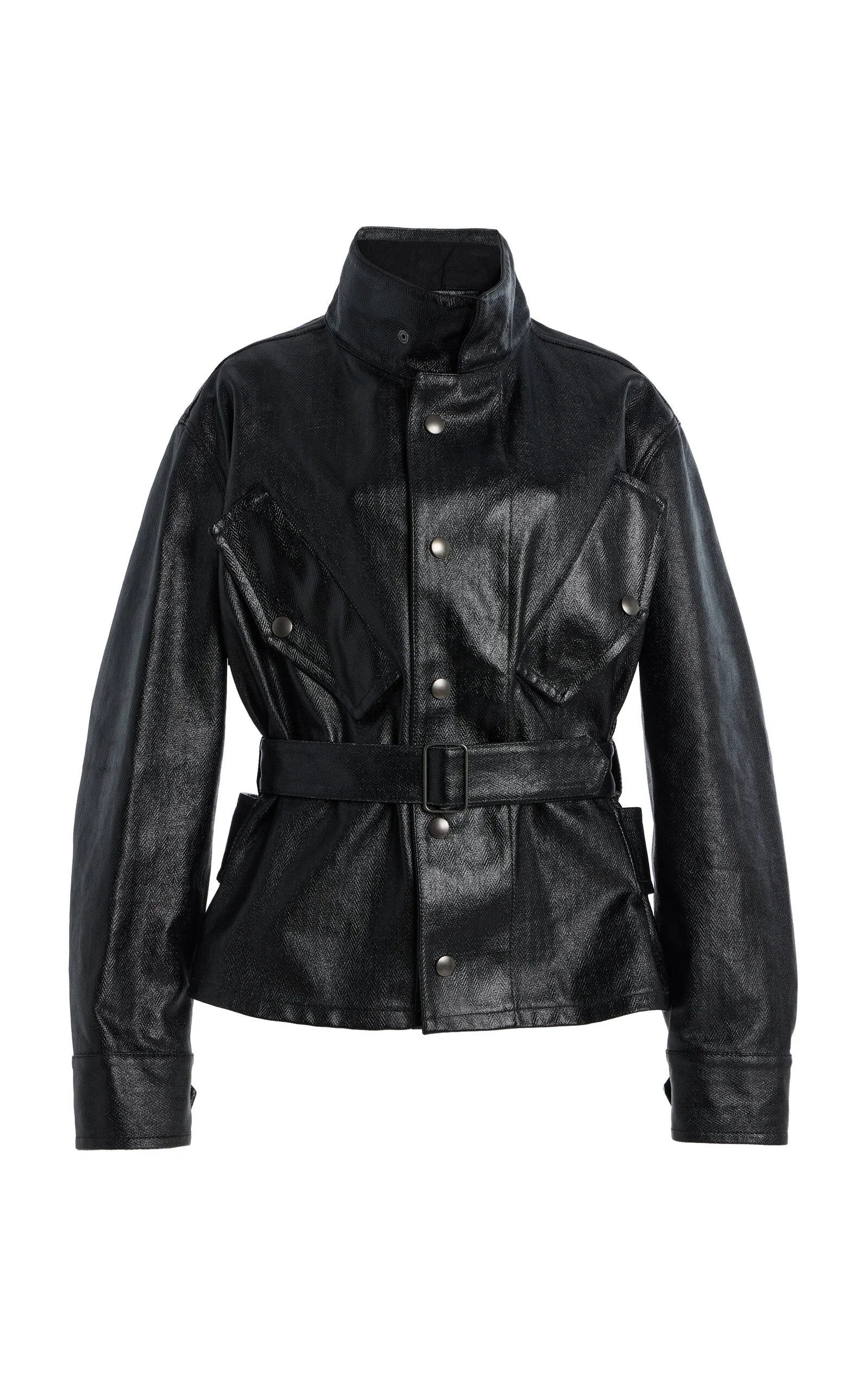 Radical conceptual designer Martin Margiela founded his eponymous couture house in 1988 and quickly established himself at the forefront of the Belgian fashion avant-garde. Made from a herringbone-woven cotton with a coated exterior, this stand-collar jacket has a relaxed fit with a cinchable waist. The brand's signature pick stitching is featured at the nape of the neck. PRODUCT DETAILS - Pre-Fall '25 - Snap fastening - Composition: 100% cotton; Coating: 100% polyurethane - Dry clean - Made in France SIZE & FIT - Designed for a relaxed fit
