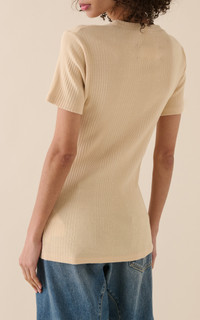 Season after season, Creative Director John Galliano pays homage to archival signatures of the French house, seamlessly updated with trompe l'oeil flourishes and ultra-cool tailoring. Simple and classic in design, this knit-cotton top features short sleeves, a crewneck, and a ribbed-knit texture with a bit of stretch that maintains its slim fit. PRODUCT DETAILS - Pre-Fall '24 - Slip on - Composition: 100% Cotton - Dry clean - Imported SIZE & FIT - Our model is wearing a size Small - Model is 5'11" with a 31.5" bust, 23" waist, and 34.5" hip - Designed for a slim fit