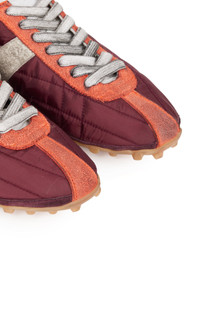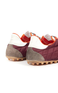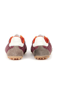 Radical conceptual designer Martin Margiela founded his eponymous couture house in 1988 and quickly established himself at the forefront of the Belgian fashion avant-garde. Today the label is run by Glenn Martens, who has maintained the brand’s intellectual blend of conceptualism and luxury. Crafted from nylon, suede and calfskin – with a vintage treatment – the Sprinters silhouette is inspired by retro running shoes. Block color contrast is met with the classic tongue displaying the numeric logo. The cleated sole also features number detailing with the 22 encircled indicating the Maison's footwear collection. Maison Margiela's signature stitch appears at the back. PRODUCT DETAILS - Lace-up fastening - Composition: padded nylon, calfskin leather, hairy suede - Designer color: Oxblood/ White/ Grey - Made in Italy