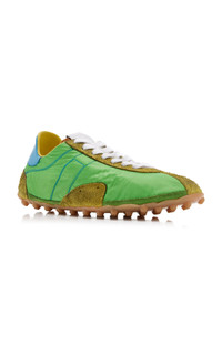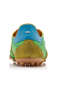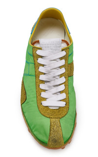 Season after season, Creative Director John Galliano pays homage to archival signatures of the French house, seamlessly updated with trompe l'oeil flourishes and ultra-cool tailoring. Crafted from nylon, suede and calfskin – with a vintage treatment – the Sprinters silhouette is inspired by retro running shoes. Block color contrast is met with the classic tongue displaying the numeric logo. The cleated sole also features number detailing with the 22 encircled indicating the Maison's footwear collection. Maison Margiela's signature stitch appears at the back. PRODUCT DETAILS - Lace-up fastening - Composition: nylon, calfskin leather, hairy suede, vintage treatment - Designer color: Kiwi/ Lagoon/ Medium Green - Made in Italy