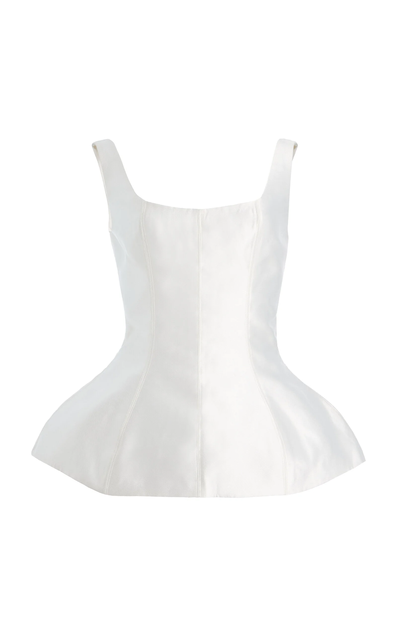 Inspired by archival vintage and antiquities, each Marlies Grace piece imbues a sense of timeless elegance with emphasis on fine tailoring and fabrications. In essence, it’s a love letter to both the designer’s mother—its namesake—and the beauty of womanhood itself. The Ivy Top continues to blend structure with softness. Its fitted bodice and flared peplum hem define the waist, while the crisp square neckline frames the collarbone with ease. PRODUCT DETAILS - Fall '25 - Slip on - Composition: 100% polyester - Dry clean - Imported SIZE & FIT - Our model is wearing a size Small - Model is 5'10" with a 30" bust, 24" waist, and 34" hip