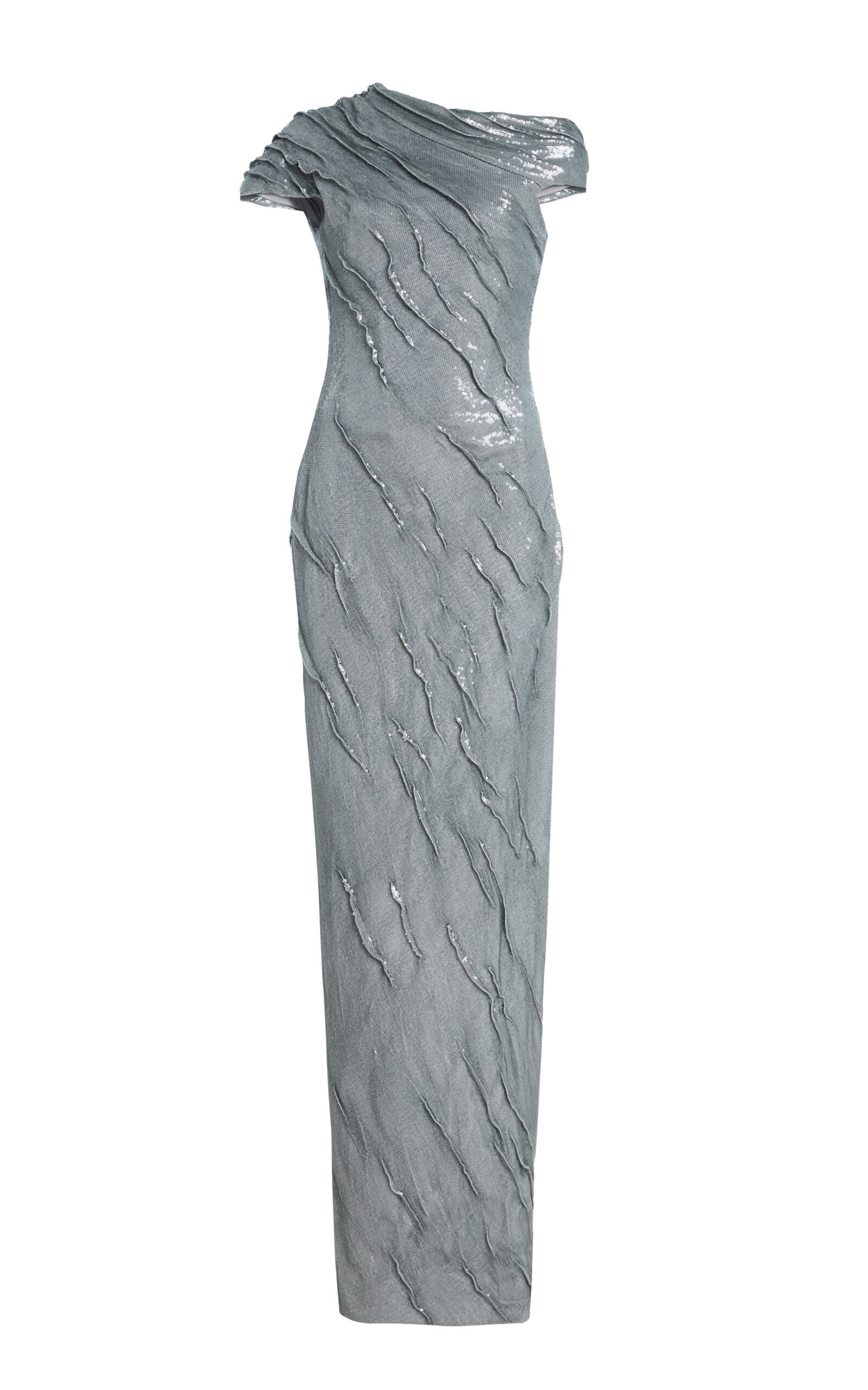 Off-The-Shoulder Sequined Gown blue