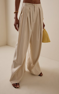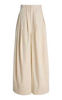 Exclusive The High-Waisted Pleated Cotton Trousers ivory