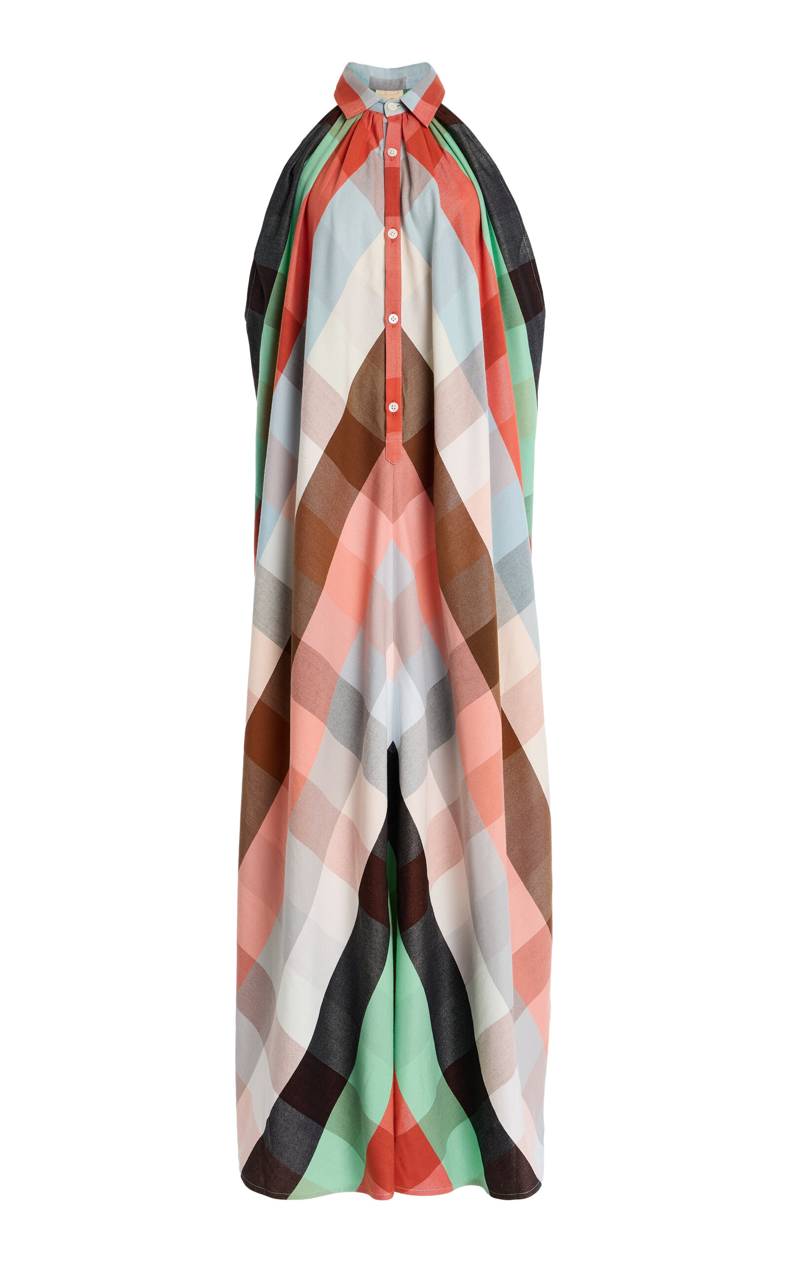 The Halter Collared Plaid Cotton Maxi Dress multi