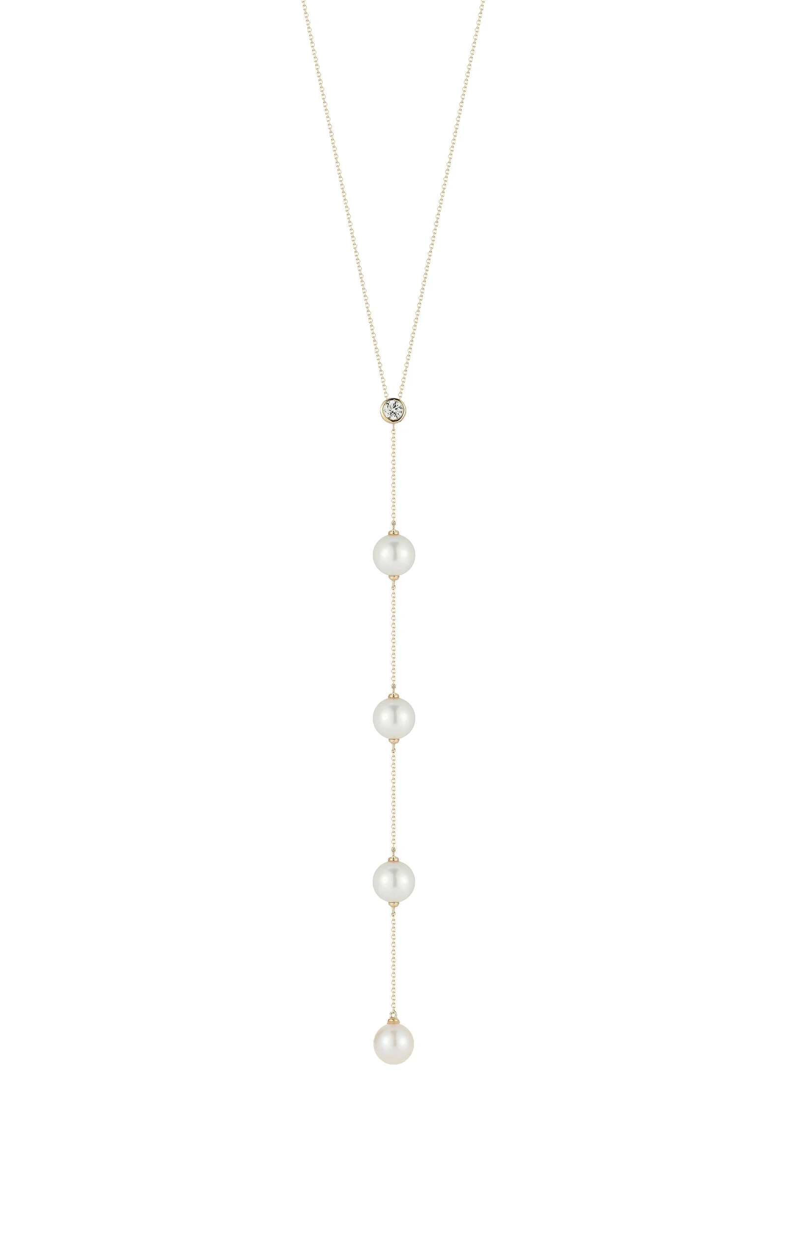 Drizzle 14K Yellow Gold Diamond, Pearl Lariat Necklace gold