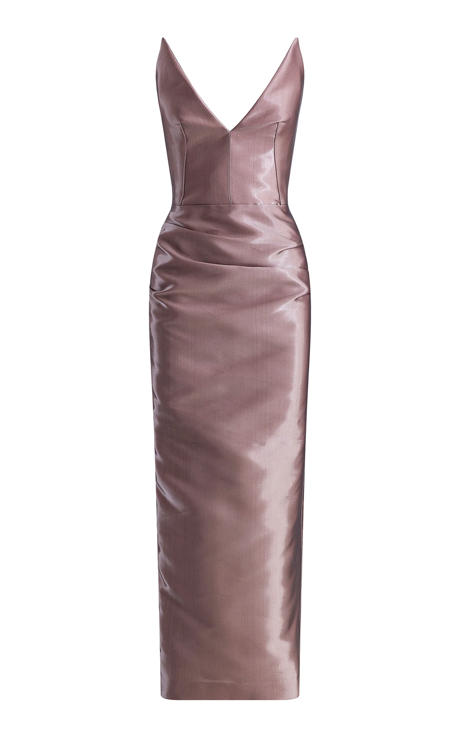 The Australian couturier crafts eveningwear that’s equal parts seductive and sophisticated. Trademarks include bustiers, directional draping, and sharp architectural folds. The overall effect puts an ultra-refreshing, relaxed spin on his avant-garde signatures. Cut from cotton, the 'Saucy Minx' midi has a fitted column silhouette defined by its striking bodice. PRODUCT DETAILS - Spring '26 - Concealed zip fastening at back - Composition: 100% cotton; Lining: 93% silk, 7% elastane - Designer color: Smoke Pink - Dry clean - Made in Australia