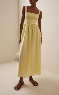 Exclusive Crossback Linen-Cotton Maxi Dress yellow