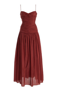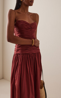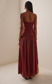 Gathered Cotton-Silk Drop-Waist Maxi Dress burgundy