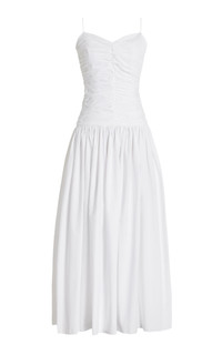 Gathered Drop-Waist Organic Cotton Maxi Dress white