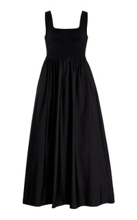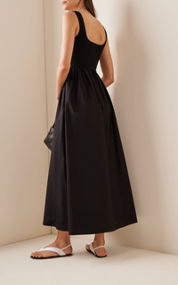 Ribbed-Knit and Cotton Maxi Dress black