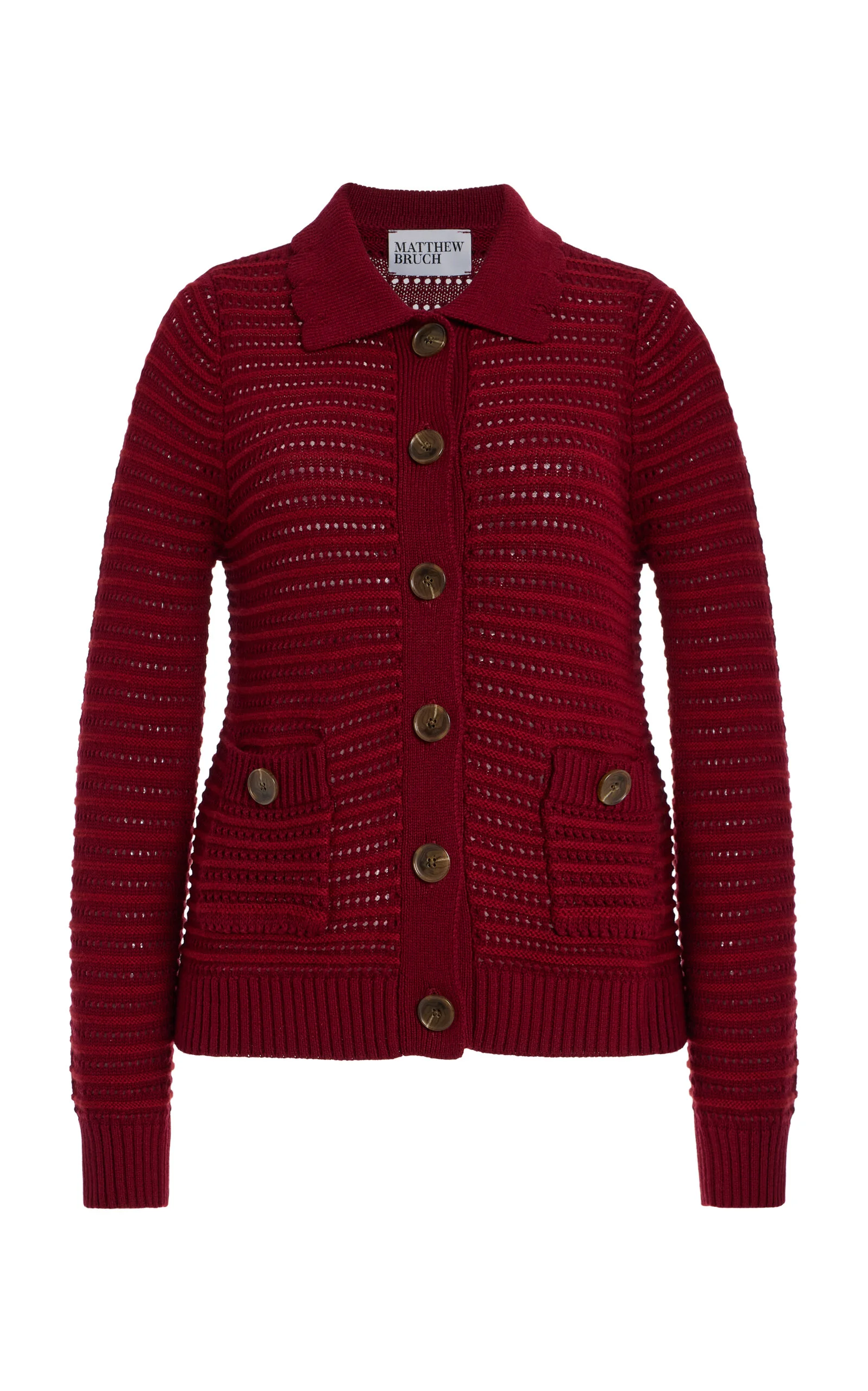 Striped Cotton-Blend Knit Cardigan burgundy