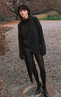 The Colombian talent continues to set a new bar in considerate design with her latest lineup of locally handmade swimwear and beachy dresses. Showcasing a wintery take on its draped and cinches summer dresses, the 'Mistral' has a crewneck sweater silhouette knit from a stretchy cotton-blend with a relaxed bodice and a sarong-like mini skirt. PRODUCT DETAILS - Fall '25 - Slip on - Composition: 75% cotton, 20% polyamide, 5% elastane - Designer color: Ganache - Dry clean - Made in Italy