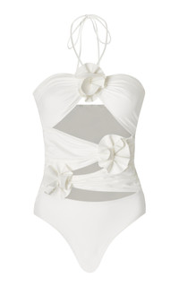 The Colombian talent continues to set a new bar in considerate design with her latest lineup of locally handmade swimwear and beachy dresses. In her signature swim fabric, with memory-shape technology that truly flatters every figure, this season’s are elevated with the couture-inflected details that make her pieces so special. Cutout front details and flower applique make this anything but your typical one piece. Wear to the beach with small gold hoops and oversized sunglasses. PRODUCT DETAILS - Slips on - Composition: 78% polyamide, 22% elastane - Hand wash - Made in Colombia SIZE & FIT - Our model is 180cm / 5'11" - This style comfortably fits those who are between a US 2-10